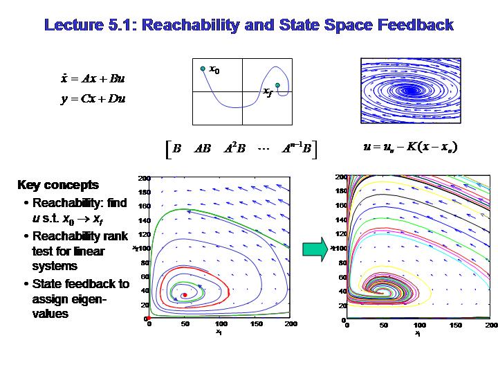Wednesday: Observability is defined and full state observers are constructed to estimate the state. The stability of observers combined with state feedback is briefly discussed.